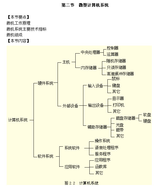 一個完整的計算機系統由硬件系統和軟件系統兩大部分組成。