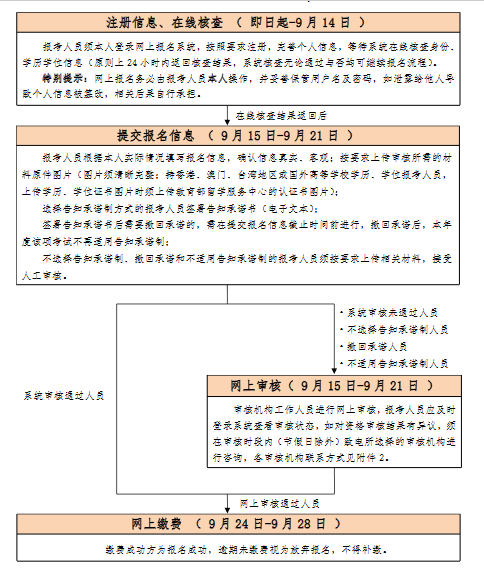 2.網上繳費時間為 2022年9月24日至9月28日。完成報名提交并通過審核的人員可進行網上繳費,繳費成功方為報名成功。報考人員報名成功后,已繳費用不予退還。